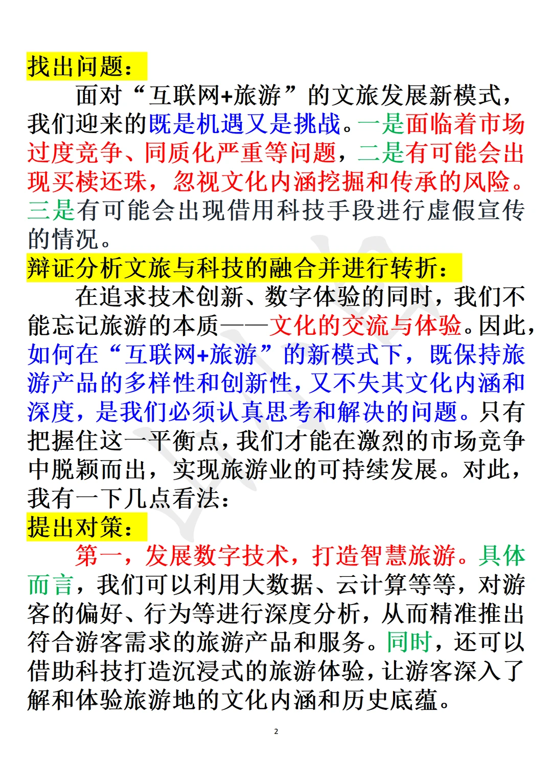 这道题要是能谈出数字技术应用与文化旅游发展的辩证关系,亮点就出来了。