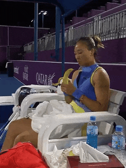 比赛期间,郑钦文在场边补给时,发现香蕉上有蚂蚁,她弹掉蚂蚁后端详再三,接着把香蕉吃了。