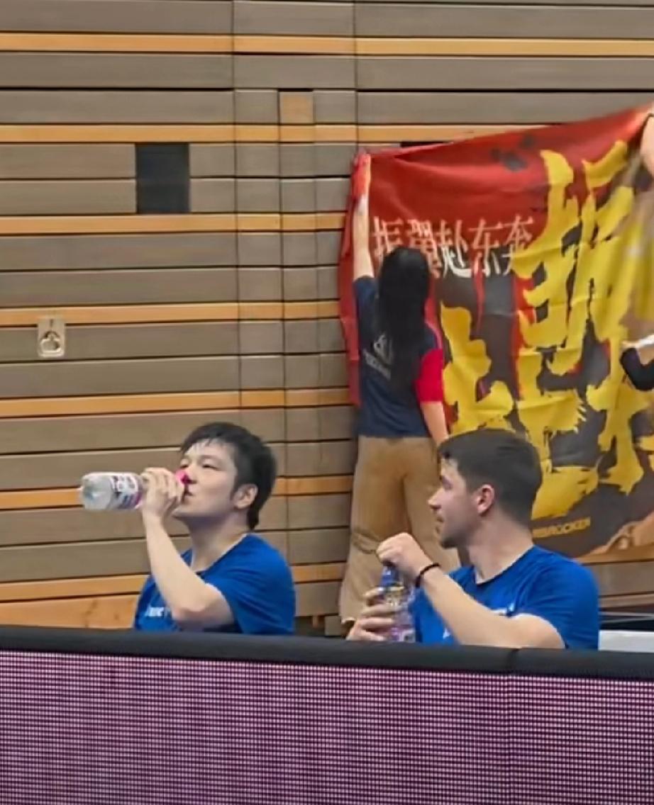 樊振东代表萨尔布吕肯俱乐部出战德甲联赛,首盘比赛3-1战胜库比克。 比赛结束后回到座位休息,看到队友弗朗西斯卡拿出一瓶水,樊振东盯着小弗打开盖子的瞬间,顺到自己手里喝起来!弗朗西斯卡还宠溺的笑了! 东哥与俱乐部队友相处非常融洽,大家可以开玩笑,可以并肩作战,这也是难得的东哥可以享受的来自团队爱与温暖!