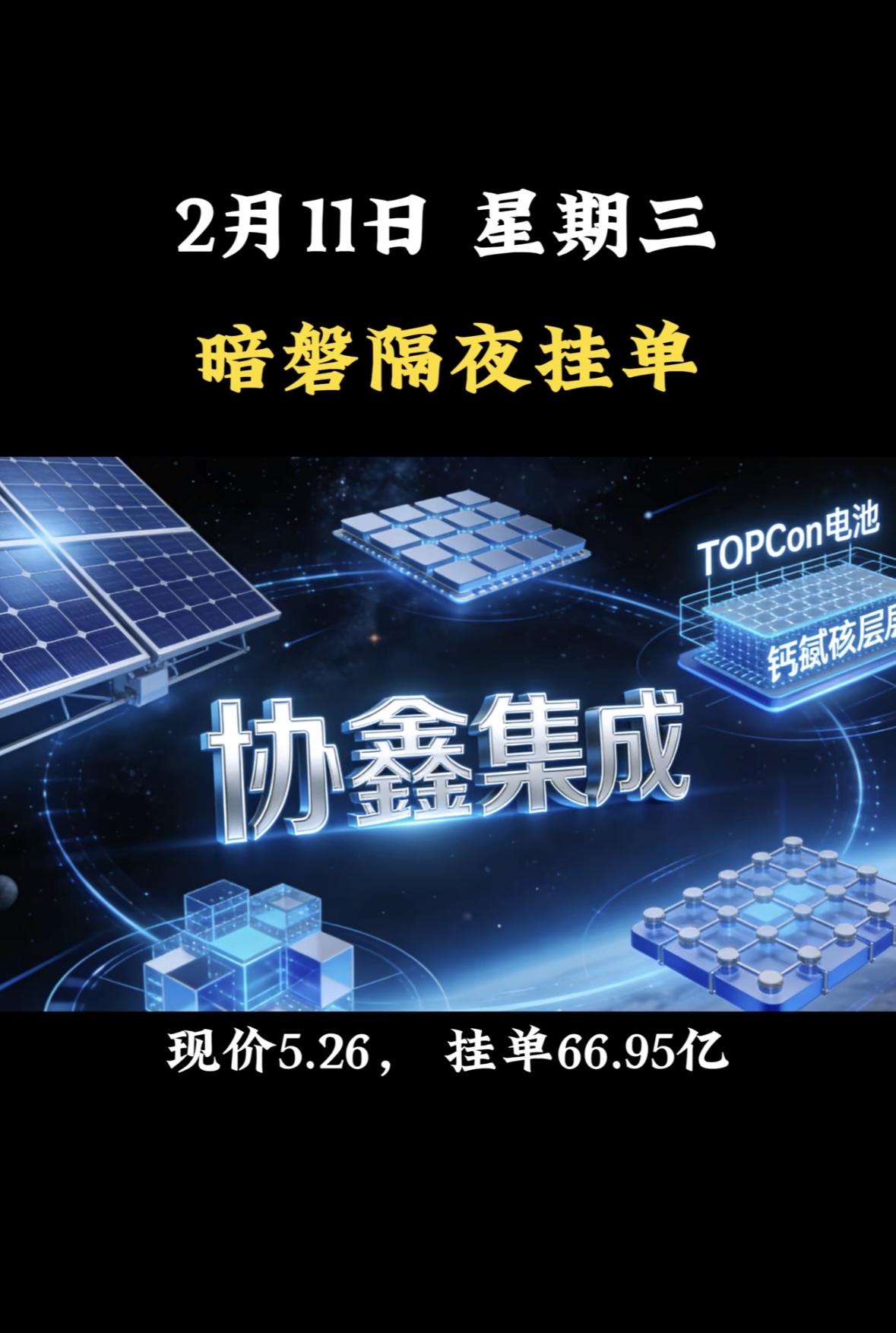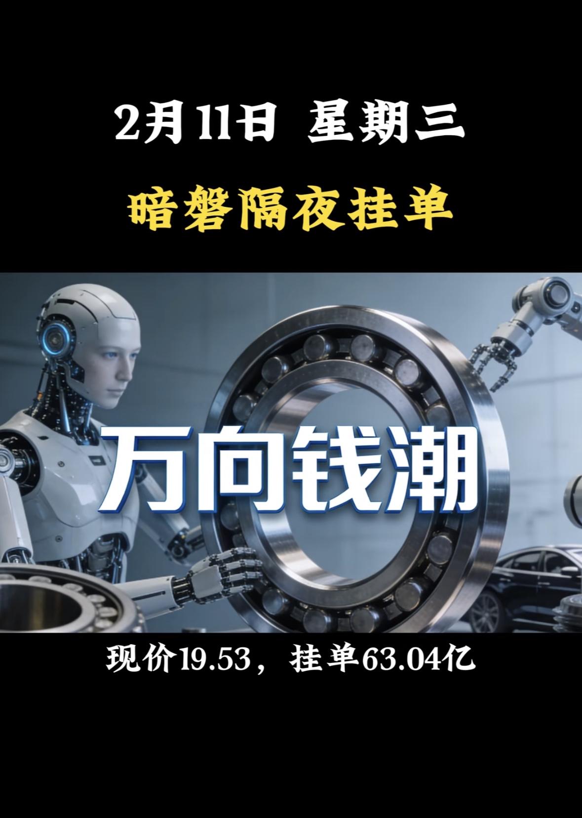 2月11日暗磐隔夜挂单,五洲新春,现价91.18,挂单70.47亿 "暗磐隔夜挂单,巨力索具现价近二十,挂单超四十亿,周三交易动态速览。"