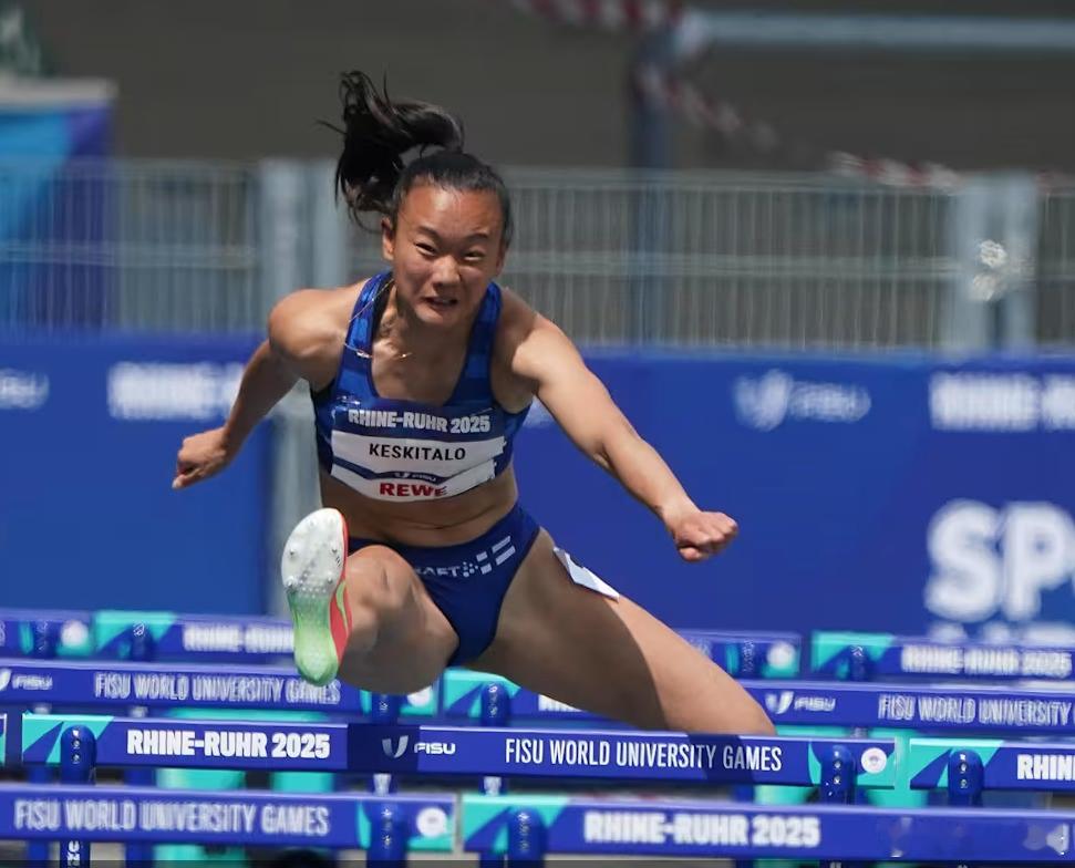 或许就是如今不知道在何方的她的亲身父母,骨子里带给她的非凡运动基因,让她在女子跨栏,这个东方人吃亏的项目里,尽最大的努力,突破性站在了最前方。田径60米栏芬兰