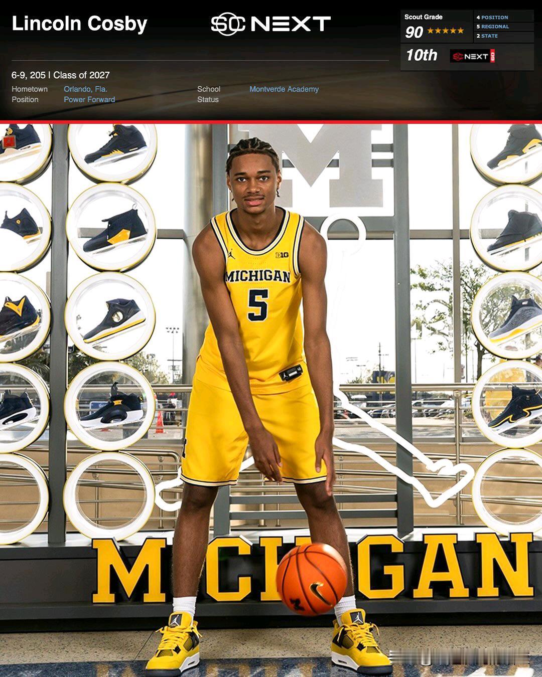 TOP30四星小前锋Lincoln Cosby宣布承诺NCAA男篮 密歇根大学,身高6-9=206,他们能够充分利用那些身材高大、技术全面且多才多艺的前锋,我可以在这种体系中打球并有所作为。球队这届收到的第五位加盟者,之前还有Joseph Hartman,Quinn Costello,Malachi Brown与Marcus Moller。