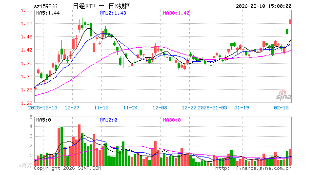 2月10日,日经ETF工银(159866)涨3.70%,成交额2.53亿元。当日份额增加100.00万份,最新份额为6.86亿份,近20个交易日份额增加1650.00万份。最新资产净值计算值为10.21亿元。