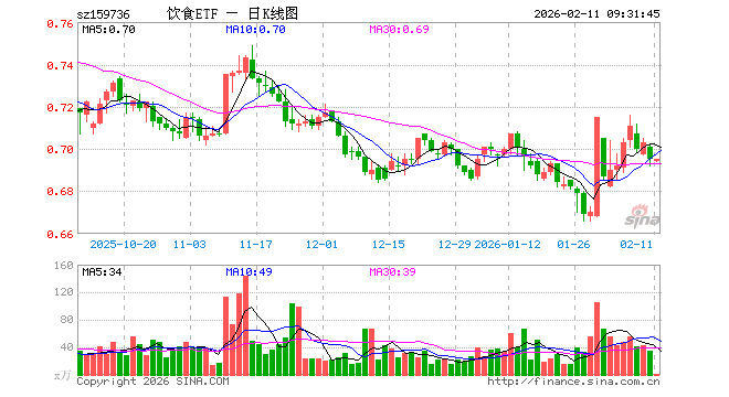 2月11日,食品饮料ETF天弘(159736)开盘跌0.14%,报0.694元。食品饮料ETF天弘(159736)重仓股方面,伊利股份开盘涨0.19%,贵州茅台涨0.00%,五粮液跌0.18%,泸州老窖跌0.01%,山西汾酒涨0.02%,海天味业跌0.05%,东鹏饮料跌0.61%,洋河股份跌0.15%,双汇发展涨0.04%,安琪酵母涨0.00%。