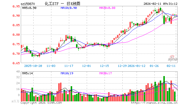 2月11日,化工ETF(159870)开盘跌0.44%,报0.901元。化工ETF(159870)重仓股方面,万华化学开盘跌0.48%,盐湖股份涨0.00%,藏格矿业跌0.56%,天赐材料跌0.05%,巨化股份跌0.23%,恒力石化涨0.00%,华鲁恒升涨0.90%,宝丰能源涨0.00%,云天化跌0.17%,金发科技涨0.05%。