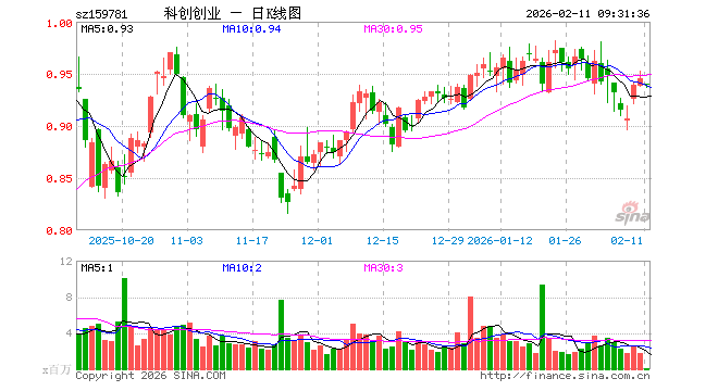 2月11日,科创创业ETF易方达(159781)开盘跌0.53%,报0.940元。科创创业ETF易方达(159781)重仓股方面,中际旭创开盘跌0.85%,新易盛跌0.77%,宁德时代涨0.53%,寒武纪跌1.09%,阳光电源跌0.50%,中芯国际跌1.89%,海光信息跌1.54%,胜宏科技跌0.77%,汇川技术跌0.47%,澜起科技跌1.46%。