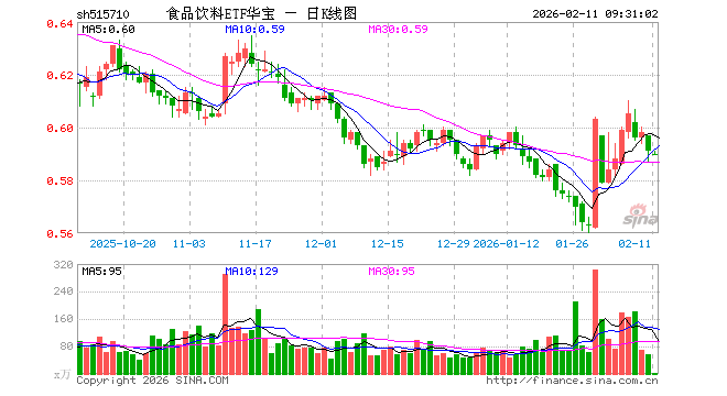 2月11日,食品饮料ETF华宝(515710)开盘跌0.17%,报0.590元。食品饮料ETF华宝(515710)重仓股方面,贵州茅台开盘涨0.00%,五粮液跌0.18%,伊利股份涨0.19%,泸州老窖跌0.01%,山西汾酒涨0.02%,海天味业跌0.05%,东鹏饮料跌0.61%,洋河股份跌0.15%,安琪酵母涨0.00%,今世缘涨0.00%。