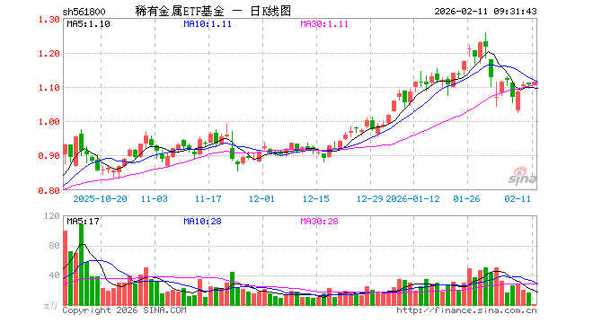 2月11日,稀有金属ETF基金(561800)开盘涨0.00%,报1.106元。稀有金属ETF基金(561800)重仓股方面,洛阳钼业开盘跌0.22%,北方稀土跌0.43%,华友钴业涨0.78%,盐湖股份涨0.00%,赣锋锂业涨0.09%,天齐锂业涨0.10%,中矿资源涨0.34%,厦门钨业涨0.17%,中国稀土跌0.77%,西部超导跌0.06%。