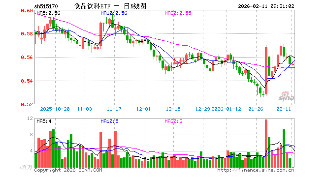 2月11日,食品饮料ETF(515170)开盘跌0.18%,报0.553元。食品饮料ETF(515170)重仓股方面,贵州茅台开盘涨0.00%,五粮液跌0.18%,伊利股份涨0.19%,泸州老窖跌0.01%,山西汾酒涨0.02%,海天味业跌0.05%,东鹏饮料跌0.61%,洋河股份跌0.15%,安琪酵母涨0.00%,今世缘涨0.00%。