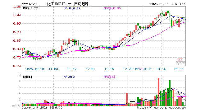 化工50ETF(516120)业绩比较基准为中证细分化工产业主题指数收益率,管理人为富国基金管理有限公司,基金经理为殷钦怡,成立(2021-03-01)以来回报为-1.87%,近一个月回报为5.97%。