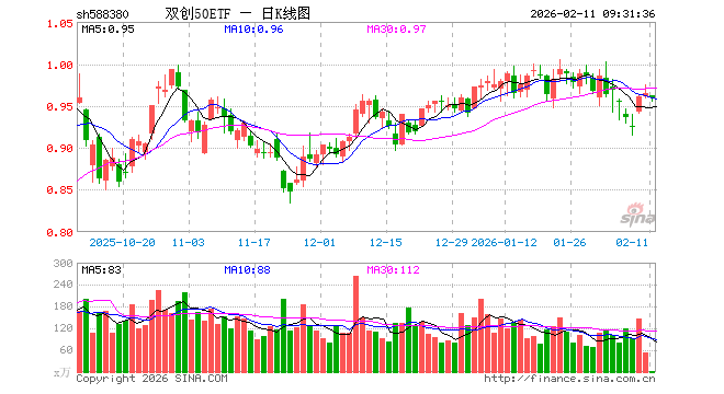 2月11日,双创50ETF(588380)开盘跌0.31%,报0.962元。双创50ETF(588380)重仓股方面,中际旭创开盘跌0.85%,新易盛跌0.77%,宁德时代涨0.53%,寒武纪跌1.09%,阳光电源跌0.50%,中芯国际跌1.89%,海光信息跌1.54%,胜宏科技跌0.77%,汇川技术跌0.47%,澜起科技跌1.46%。