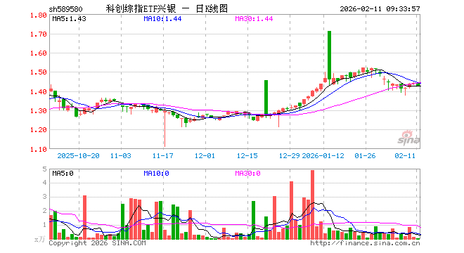 科创综指ETF兴银(589580)业绩比较基准为上证科创板综合价格指数收益率,管理人为兴银基金管理有限责任公司,基金经理为林学晨、李浩,成立(2025-05-27)以来回报为43.78%,近一个月回报为-0.34%。