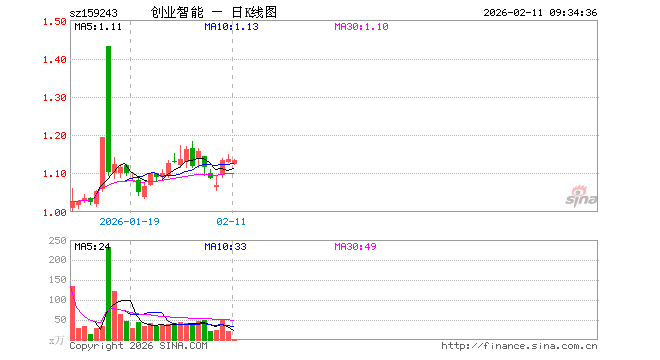 2月11日,创业板人工智能ETF招商(159243)开盘跌1.32%,报1.123元。创业板人工智能ETF招商(159243)重仓股方面,中际旭创开盘跌0.85%,新易盛跌0.77%,天孚通信跌0.37%,同花顺跌0.23%,润和软件跌0.38%,北京君正跌1.38%,昆仑万维跌0.02%,蓝色光标跌1.63%,长芯博创跌0.71%。