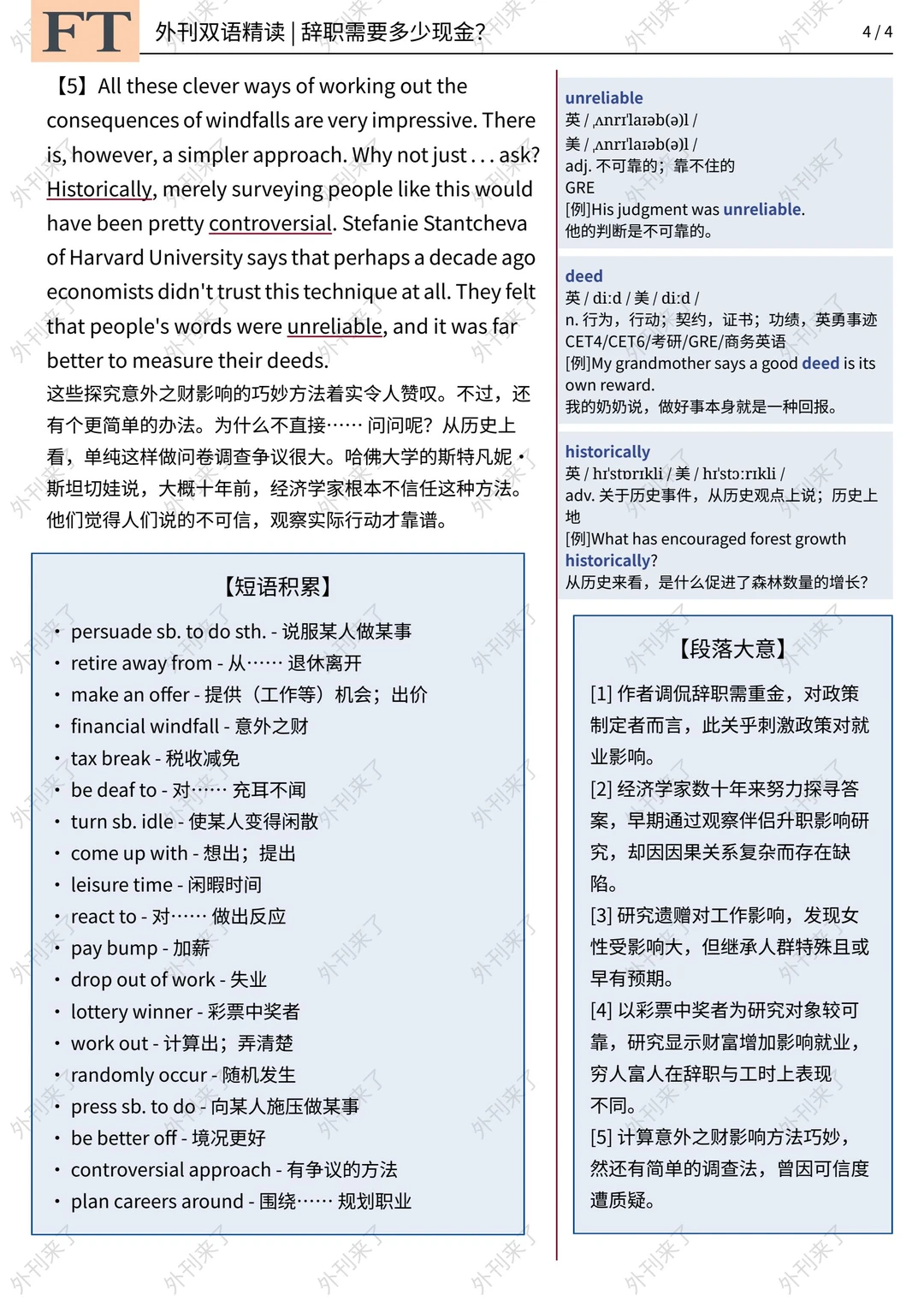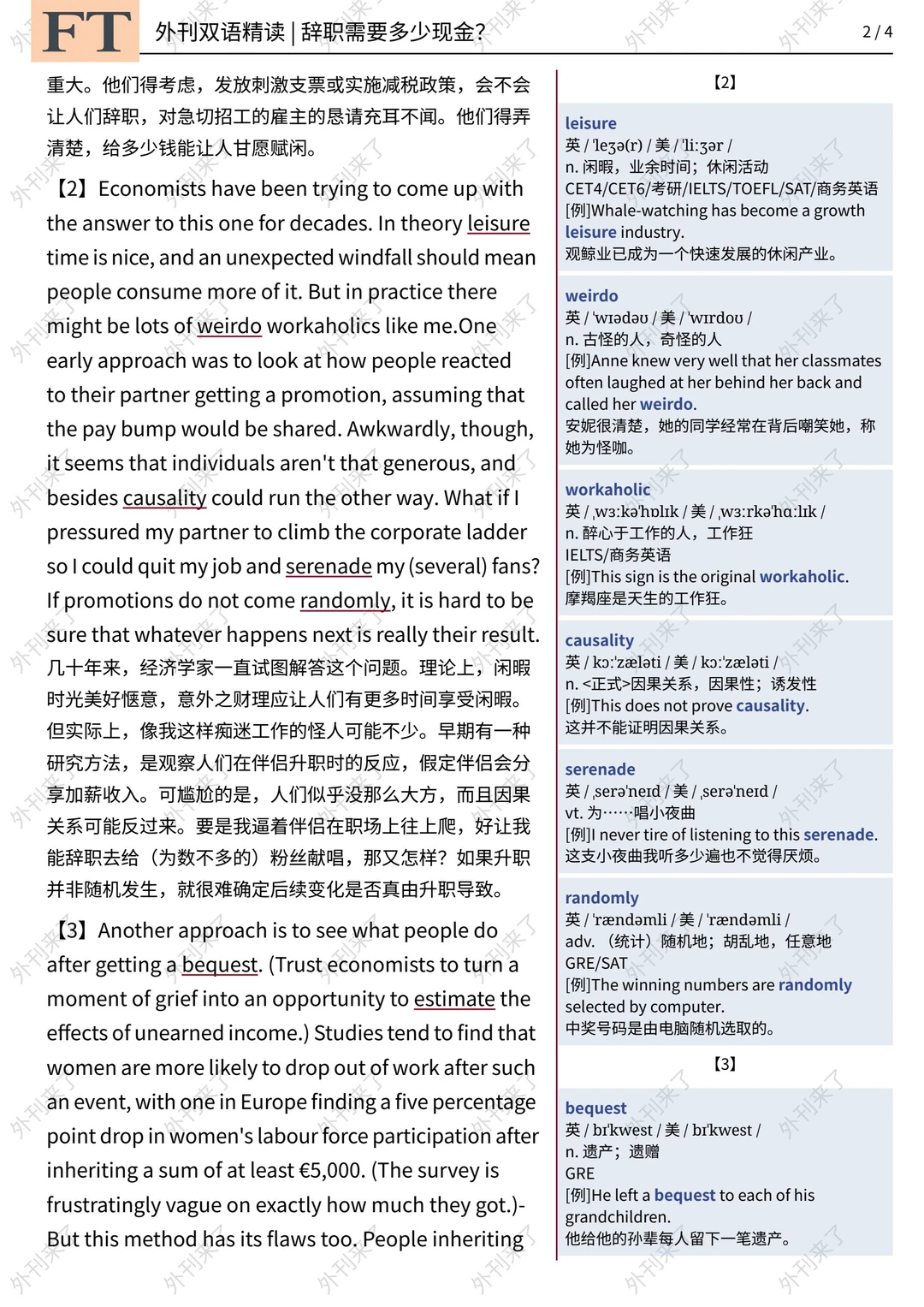 🔥英语学习必备的外刊精读 ⭐选自选⾃Financial Times ⭐每周会从原刊中选取多篇文章精读 🏆🏆重点单词⤵️ 🏅randomly - adv. 任意地 🏅idle - adj. 无事可做的 🏅unreliable - adj. 不可靠的 🏅bequest - n. 遗产 🏅stimulus - n. 刺激 🏅windfall - n. 意外之财 🏅presumably - adv. 大概,可能 🏅deed - n. 行为,行动 🏅leisure - n. 闲暇时间