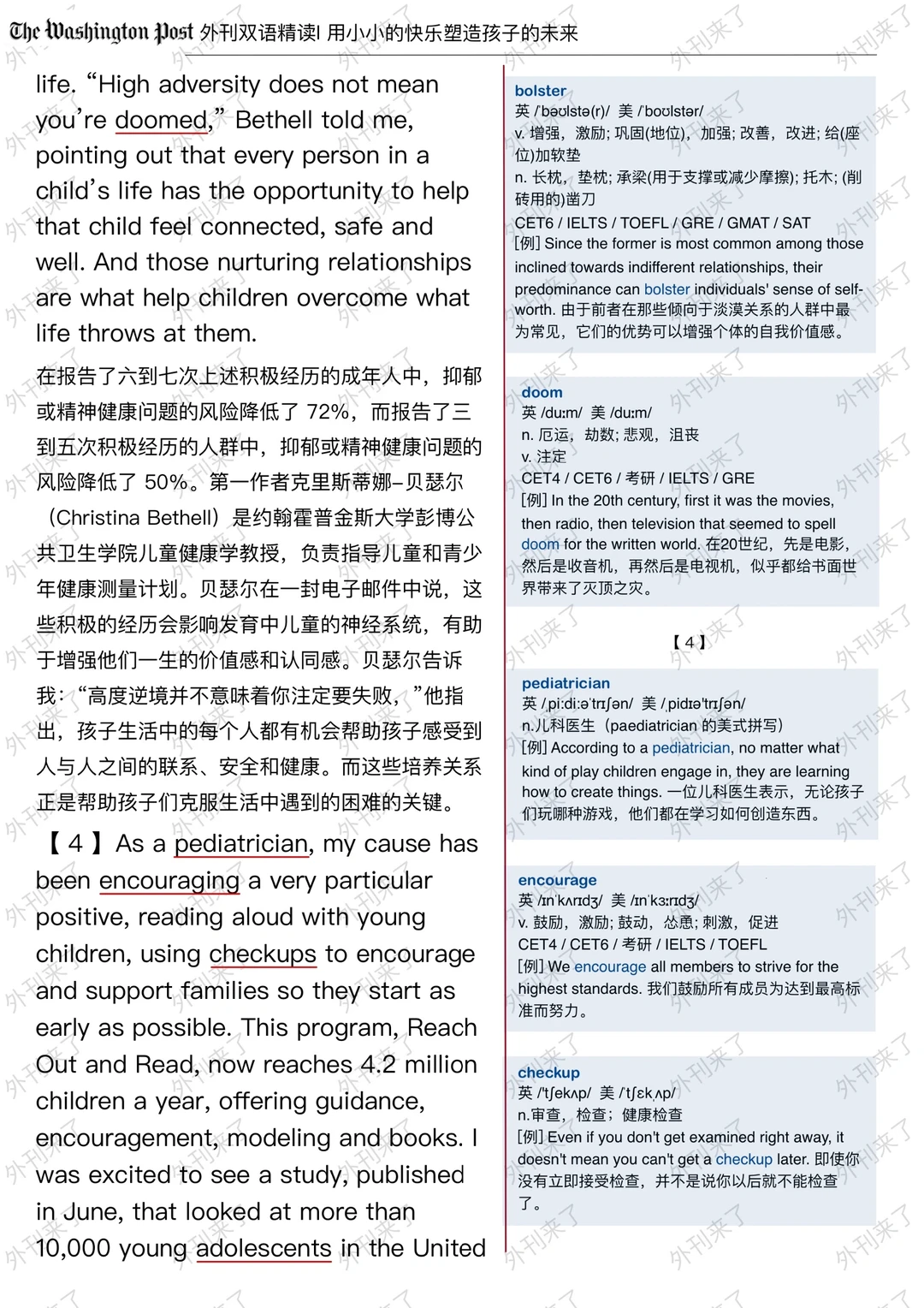 🔥英语学习必备的外刊精读 ⭐选自The Washington Post ⭐每周会从原刊中选取多篇文章精读 🏆🏆重点单词⤵️ 🏅disrupt 中断 🏅stable 稳定的 🏅nurture 养育 🏅adversity 逆境 🏅reframe 重新构建 🏅caregiver 看护者 🏅adolescent 青少年 🏅bolster 增强 🏅doom 厄运 🏅checkup 审查