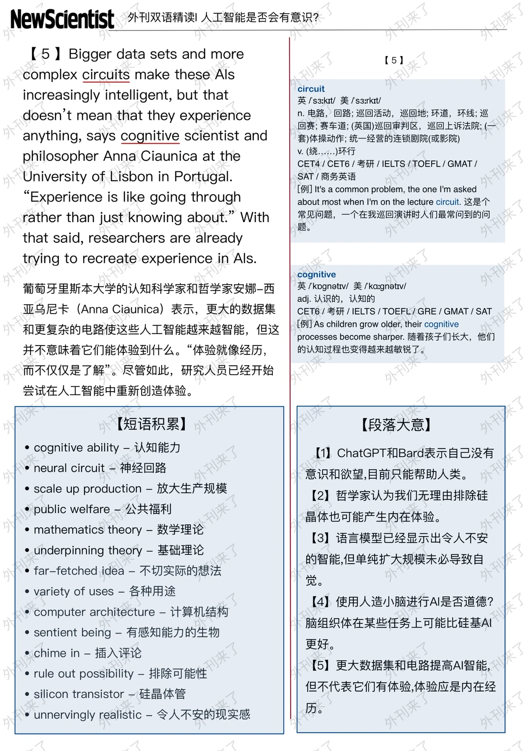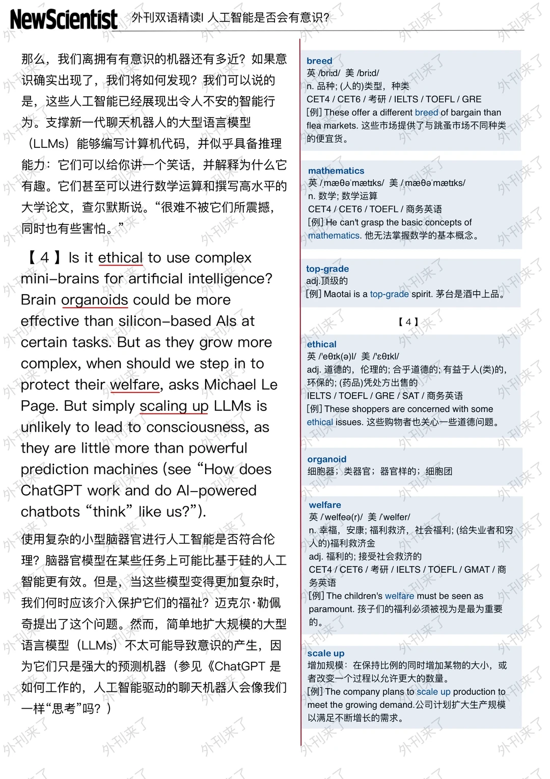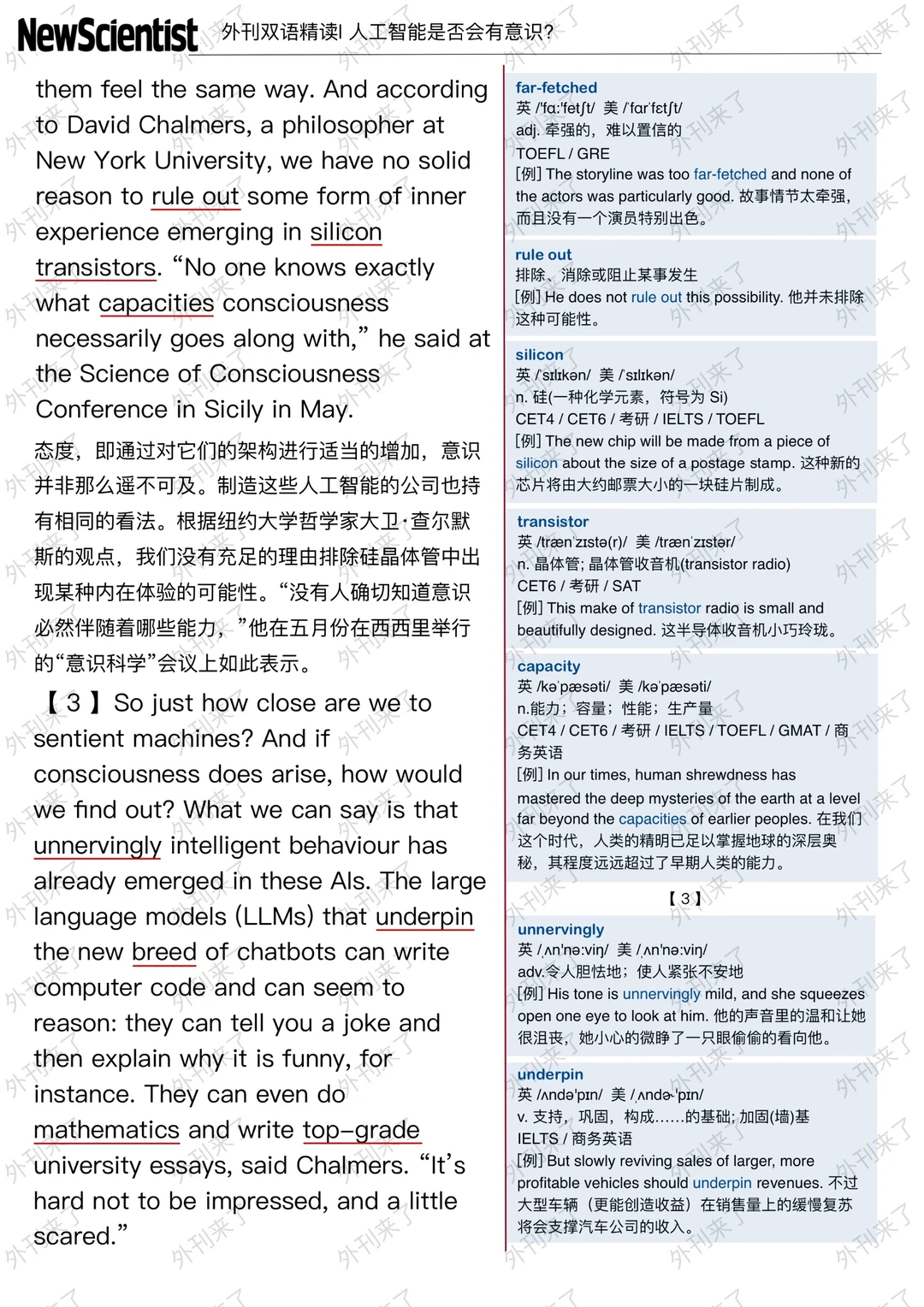 🔥英语学习必备的外刊精读 ⭐选自New Scientist ⭐每周会从原刊中选取多篇文章精读 🏆🏆重点单词⤵️ 🏅sentient 有感觉力的 🏅variety 各式各样的 🏅architecture 建筑设计 🏅far-fetched 难以置信的 🏅rule out 排除 🏅silicon 硅 🏅transistor 晶体管 🏅unnervingly 令人胆怯地 🏅underpin 支持 🏅top-grade 顶级的 🏅welfare 幸福
