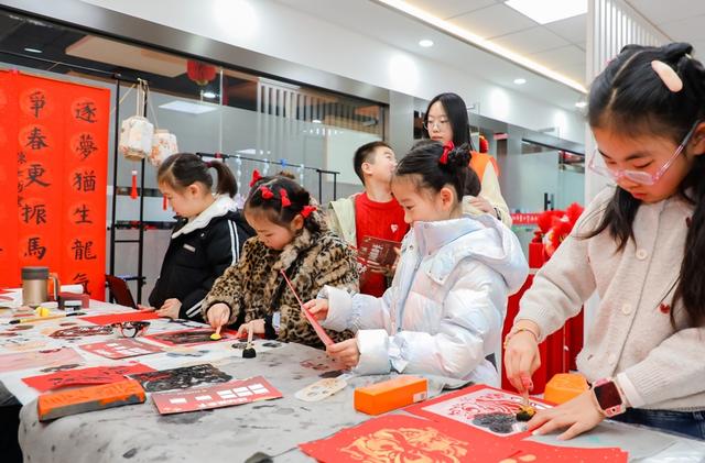 “一步一景、诗趣盎然”是现场的真实写照。这里不仅布置了“诗词里的中国年”图文展,还装饰了诗句地贴和诗词路引。最受欢迎的是诗词挑战摊位和民俗体验区,孩子们通过完成诗词接龙、诗词拼图、诗词飞花令等趣味任务,以及体验拓印、彩泥、串珠等非遗手工活动来收集印章,换取新春小礼物。一面可触摸的“对诗词”互动翻翻墙前,参与者将散落文字拼合成完整诗句,在游戏中悄然记住了经典。