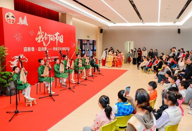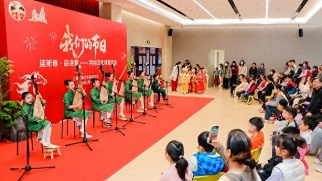 在新春游园会的同时,一场小而美的传统文化节目精彩上演。寒假期间,活动中心设计了丰富多彩的、以传承中华优秀传统文化为主题的兴趣课程,这场展演的表演者正是这里的学员。他们为大家带来评弹表演、萌娃来拜年、传统文化服饰展示等节目,展现了新时代青少年对传统文化的理解与演绎。