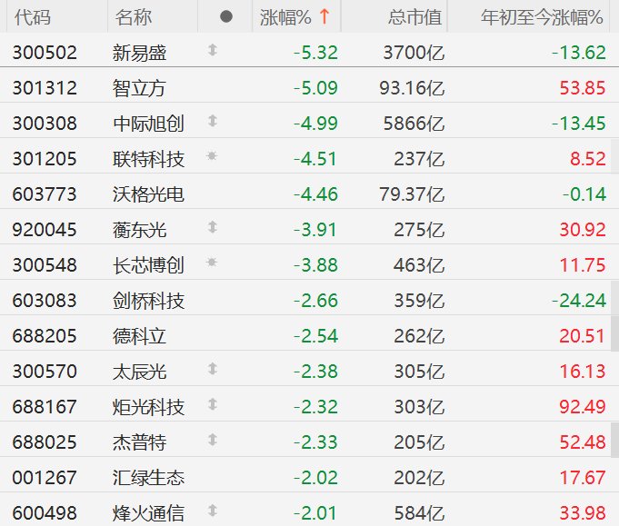 A股CPO概念股集体下跌,新易盛跌超5%