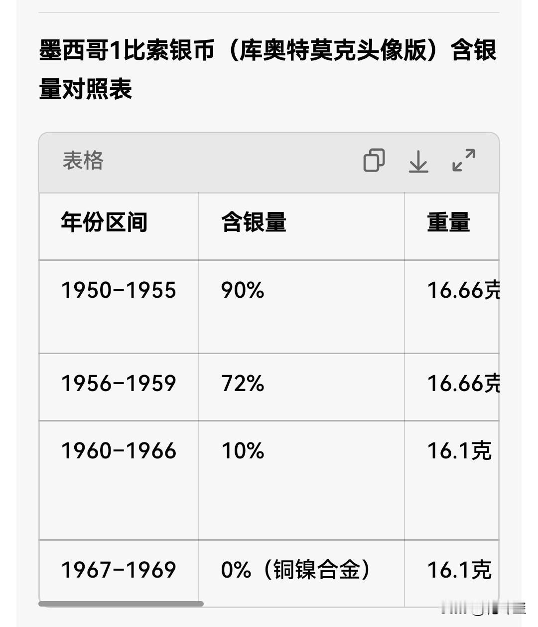 这些知识不知道会吃大亏? 在2019年随意拍了两枚墨西哥银元,感觉价格不高,就当个品种玩,今年白银价格暴涨,突然想起来那些外国银元,找出来想变现,按白银价格出,好奇心,就拍了图片问豆包,不问不知道,一问吓一跳,我拍的那枚漂亮的1966年制作的墨西哥银元,含银量才百分之10,而价格低不起眼的这枚1957年版墨西哥银元,含银量72%,真是有意种花化不开,无意插柳柳成行呀?幸亏是买的是1966年版的,还多少有点银,1967年以后的版,含银量等于0,而1955年以前制造的含银量是90%,这些知识不知道,买卖墨西哥银元会吃大亏的外国银元 光绪年坐洋银元 银元鉴定技巧 墨西哥天平银币 银元版别价值