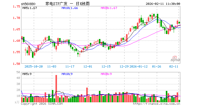 2月11日,截止午间收盘,家电ETF广发(560880)跌0.71%,报1.674元,成交额592.32万元。家电ETF广发(560880)重仓股方面,格力电器截止午盘跌0.08%,美的集团跌0.42%,三花智控跌1.73%,海尔智家跌0.31%,麦格米特跌3.33%,四川长虹跌0.20%,石头科技涨0.42%,海信视像跌0.45%,科沃斯涨1.18%,兆驰股份涨3.61%。