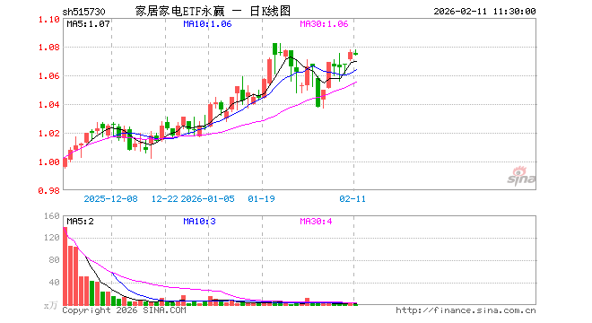 家居家电ETF永赢(515730)业绩比较基准为中证家居家电指数收益率,管理人为永赢基金管理有限公司,基金经理为储可凡,成立(2025-11-14)以来回报为7.70%,近一个月回报为2.91%。