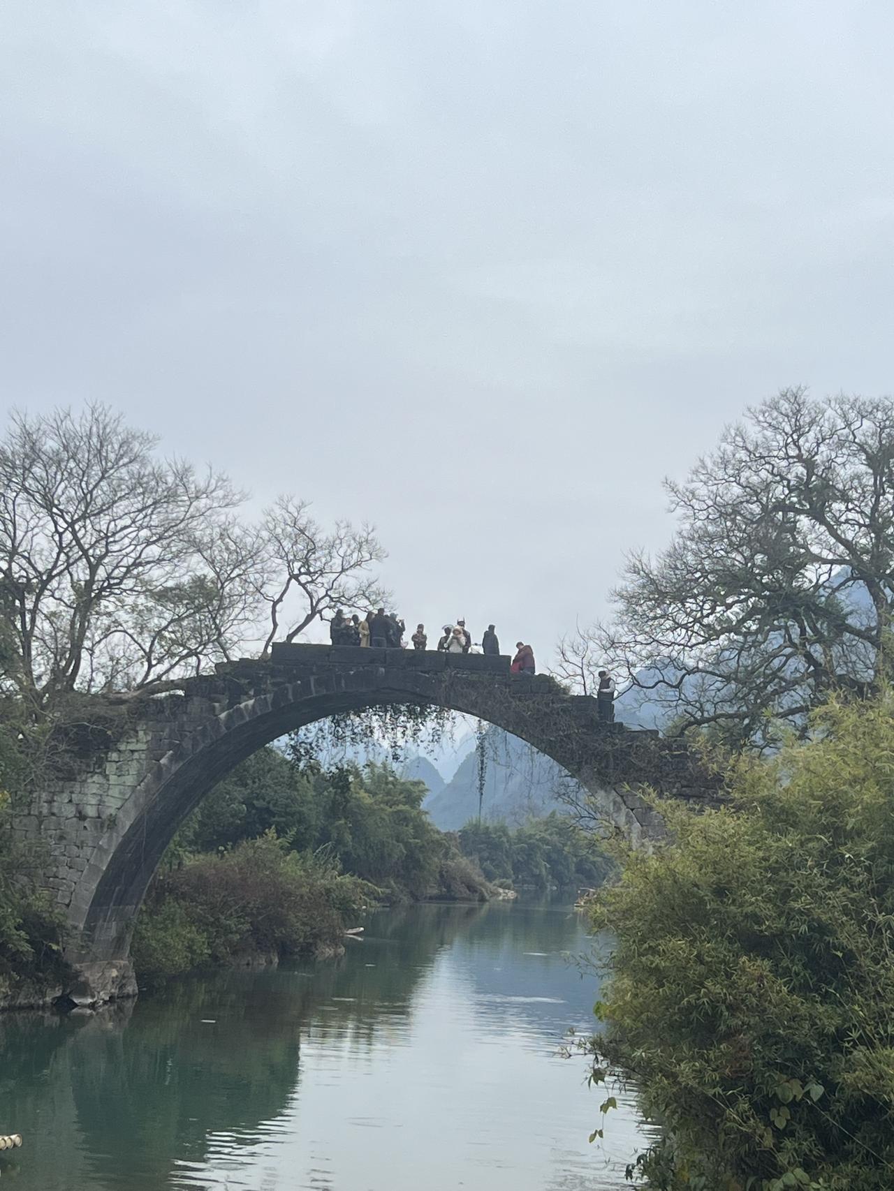阳朔富里桥|免费秘境太出片啦✨ 来阳朔富里桥啦!明代古桥真的绝,桥拱映在水里像一轮满月,山水田园美得像水墨画~ 还偶遇老板精心打造的造型柿子树,石树搭配超有意境,现在免费开放,随手一拍都是大片,氛围感拉满! 人少景美不收费,拍照巨好看,这趟来得太值了!
