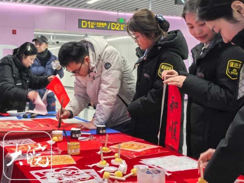 大皖新闻讯2月10日,合肥轨道交通4、6号线的尧渡河路站、大兴集站、陆军兵种大学站、望湖城南站、龙塘站同步开展新春主题活动,通过写春联、拓印“福”字、趣味套圈等互动形式,为市民乘客送上新春祝福,让传统年俗融入日常出行。