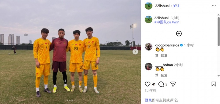 李帅在个人社媒晒出与三位U19国足门将的合影,根据集训名单,U19国足三位门将分别是安智诚、范梦桐以及依合散·依拉木。