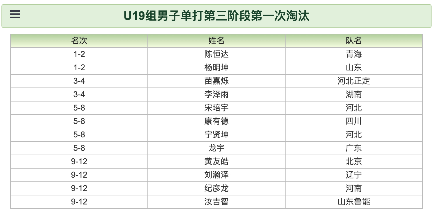 2026年第二次国家青年队入队选拔赛丨U19组男子单打第三阶段第一次淘汰陈恒达(青海)、杨明坤(山东)