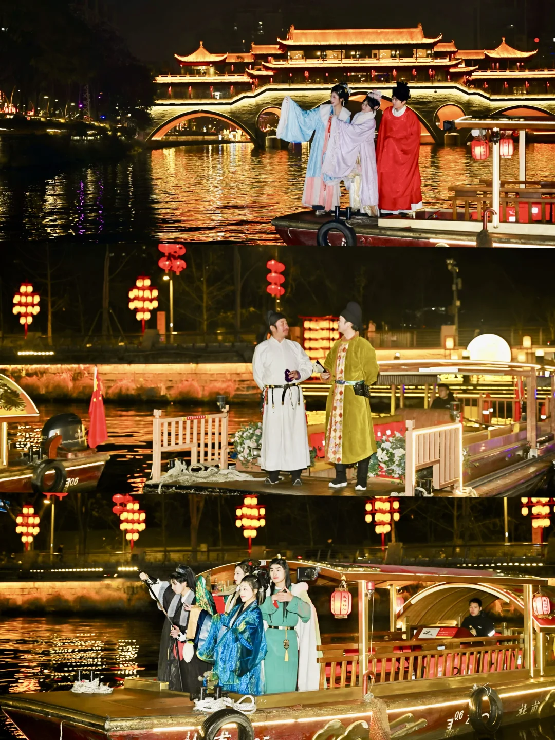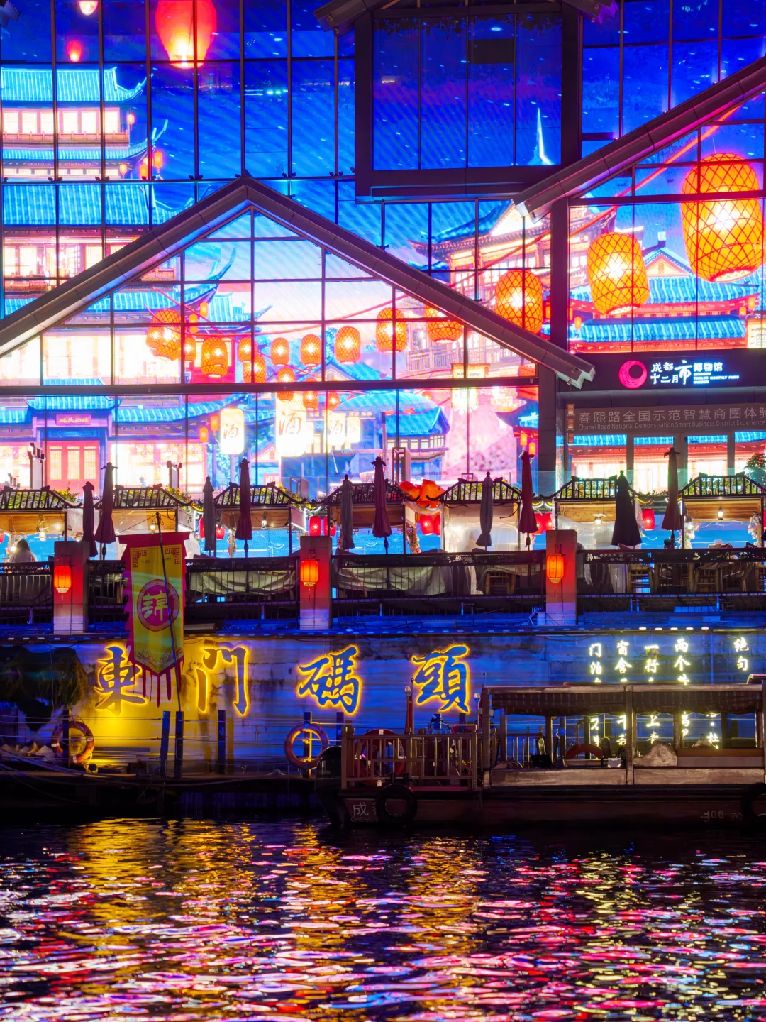 乘坐游船两岸的灯光与水面倒影交相辉映,还有沉浸式的水岸演绎,这浪漫的氛围让人着迷。