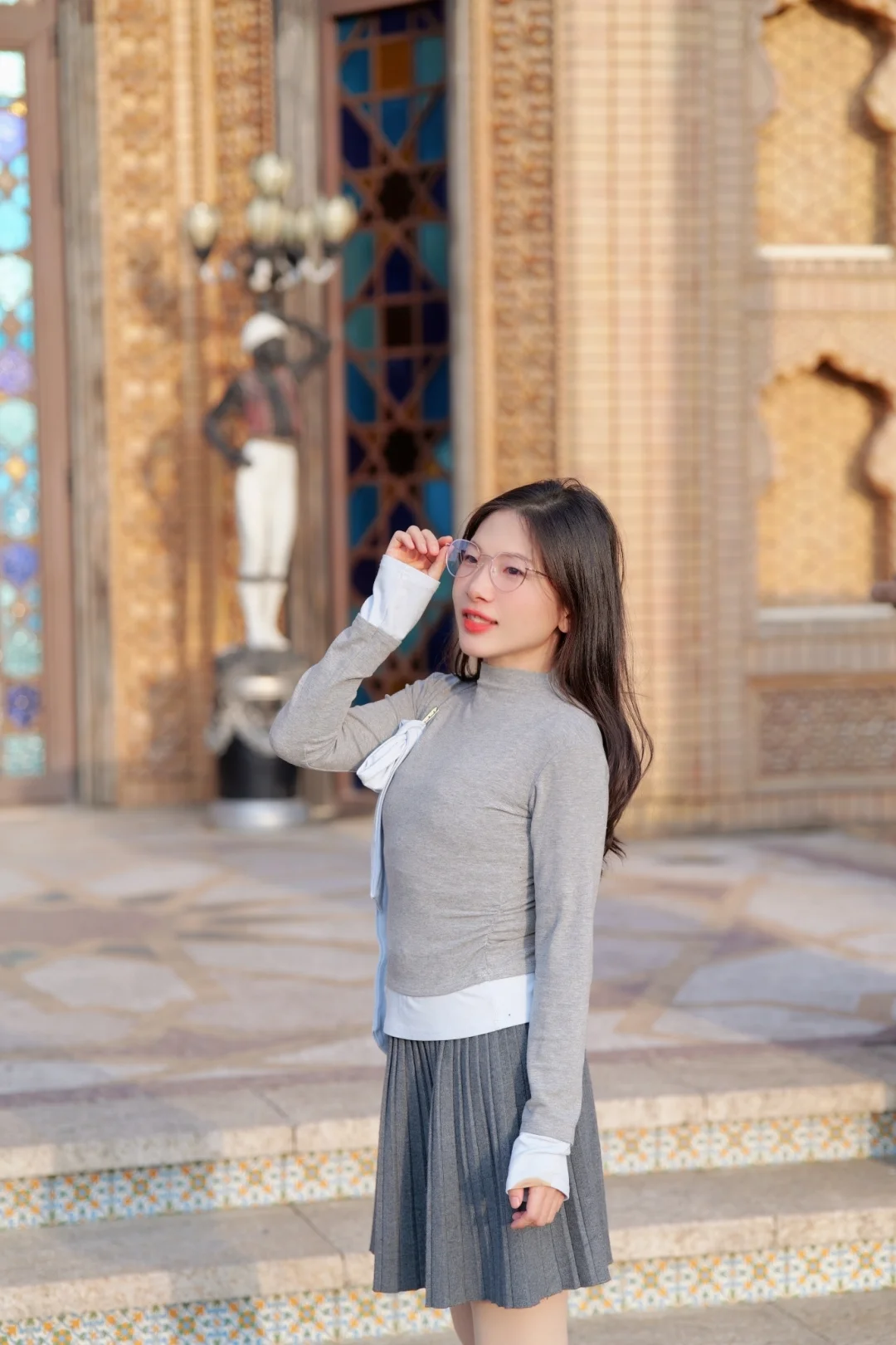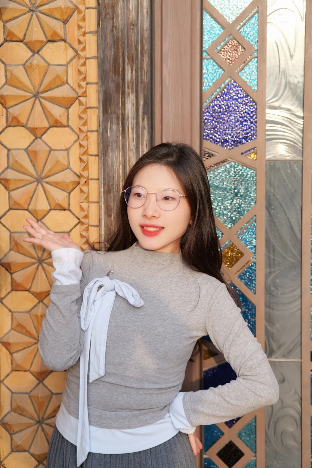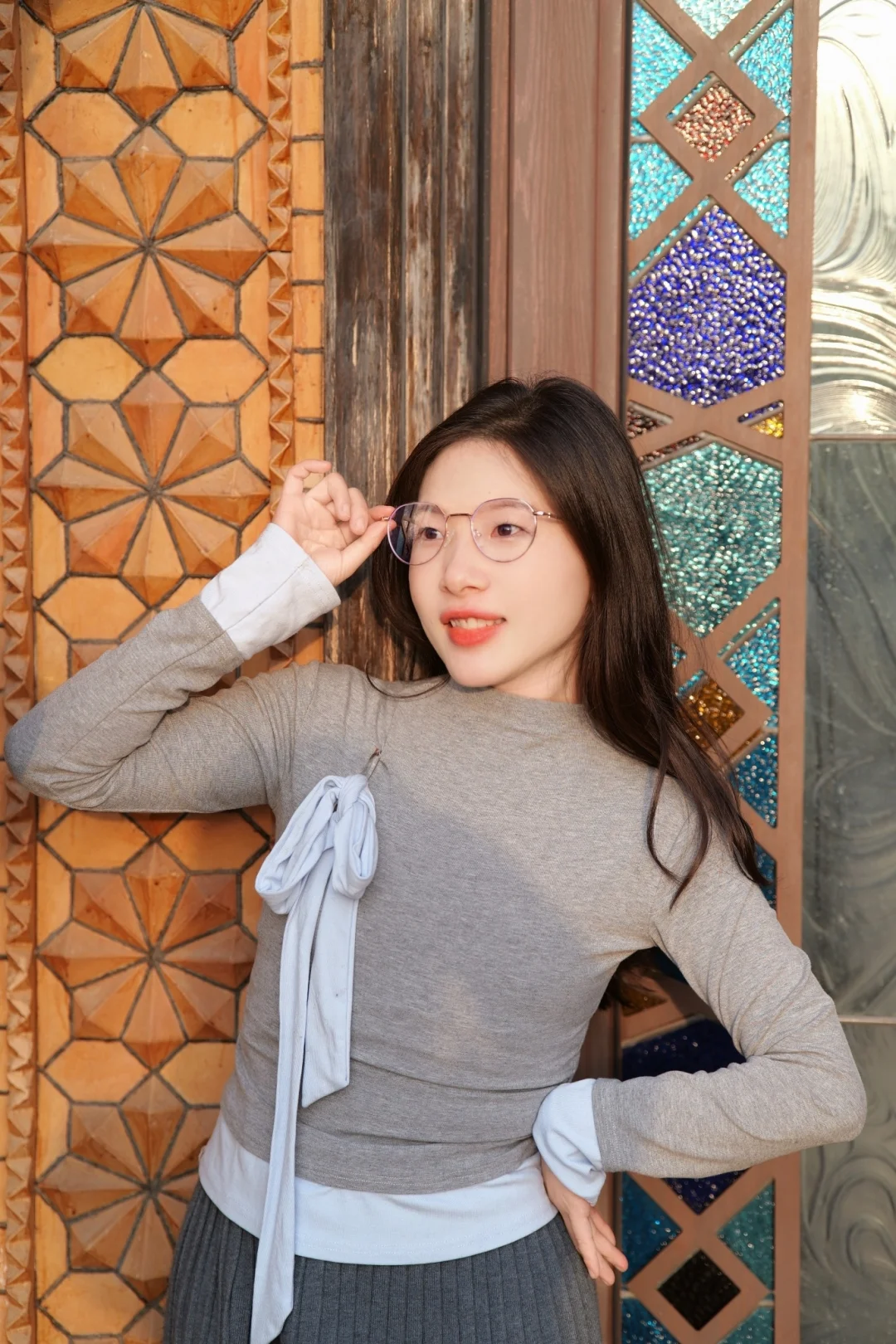 漫步在汉中街道 每一步都像走在左岸老电影里 整身造型的点睛之笔 是这副孙乐言同款CYXUS玳瑁纹金丝眼镜 复古框型与现代防蓝光工艺结合 让目光温柔又清晰 低头阅读时镜片泛着柔光 抬眼时便成了自然的文艺配饰 无需远行 一副眼镜便能带你去往复古优雅的“异国”日常 .
