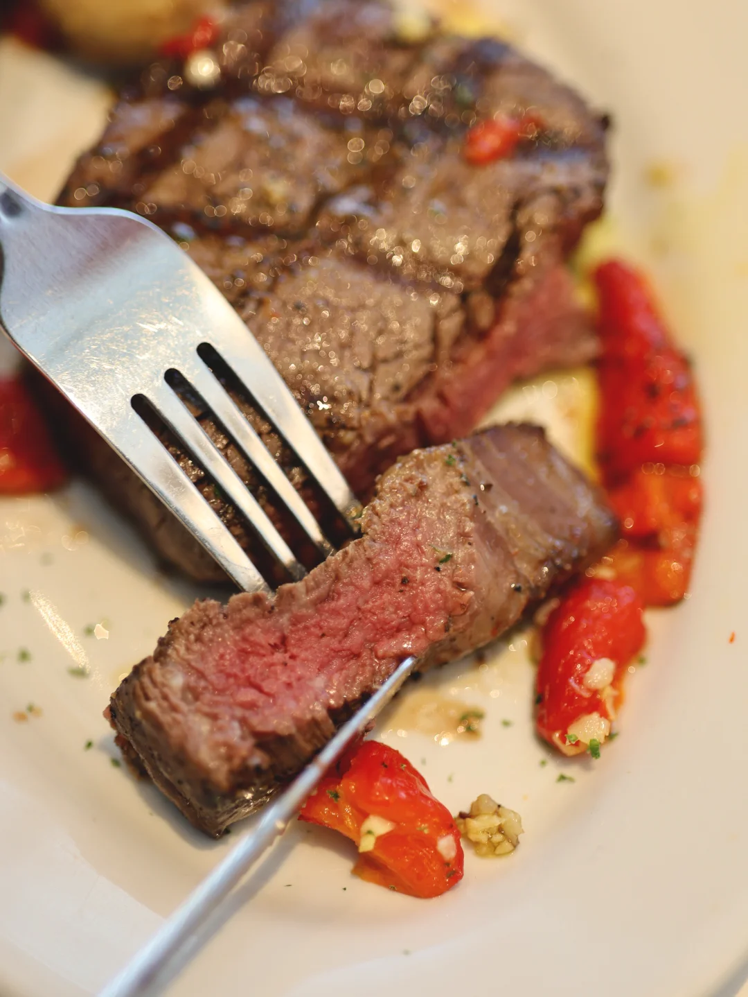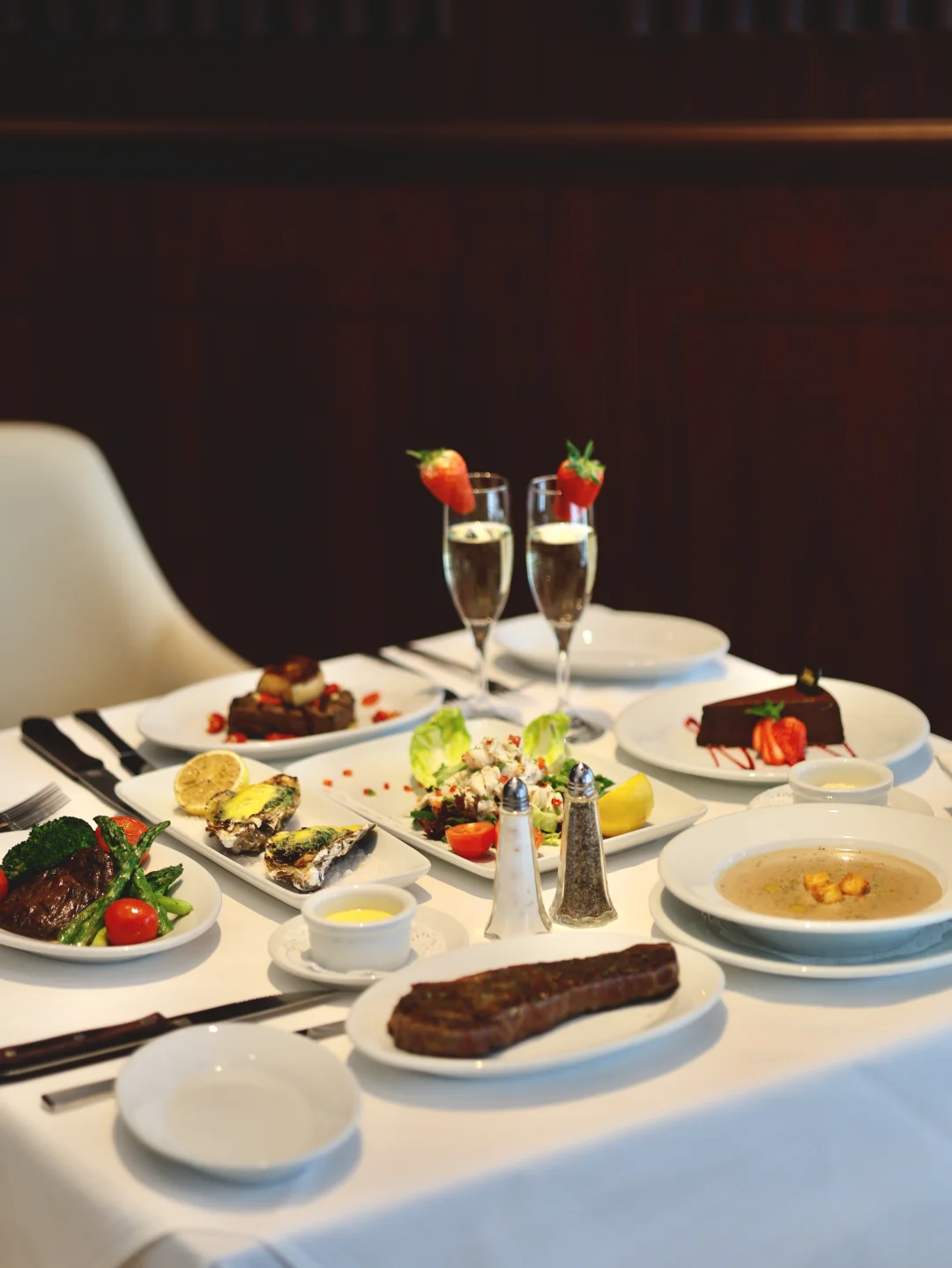 值得一提的是,茹丝葵的牛排都需经两道工序:先用982℃的特制烤炉进行第一次烘烤,烘烤到一定火候再端上客人的餐桌~而后是浪漫又有看点的一个环节:客人面前会放置一个260℃的高温陶瓷盘,表面涂满黄油,服务生会将牛排放置在里面进行二次加温醒肉。