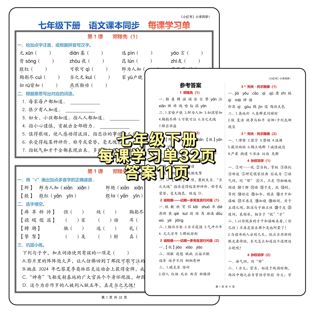 家有七下娃必入,解决字词默写差、基础不牢的痛点✅ ✅ 课本同步|✅ 每日默写 ✅ 科学规划|✅ 轻量化练习 32页练习题+11页详细答案,贴合考点,孩子可自主自查,预习复习都适用 📌 完整版:店铺获取,解锁全部练习+答案 ⚠️ 禁止转载、商用,侵权必究,尊重原创❤️
