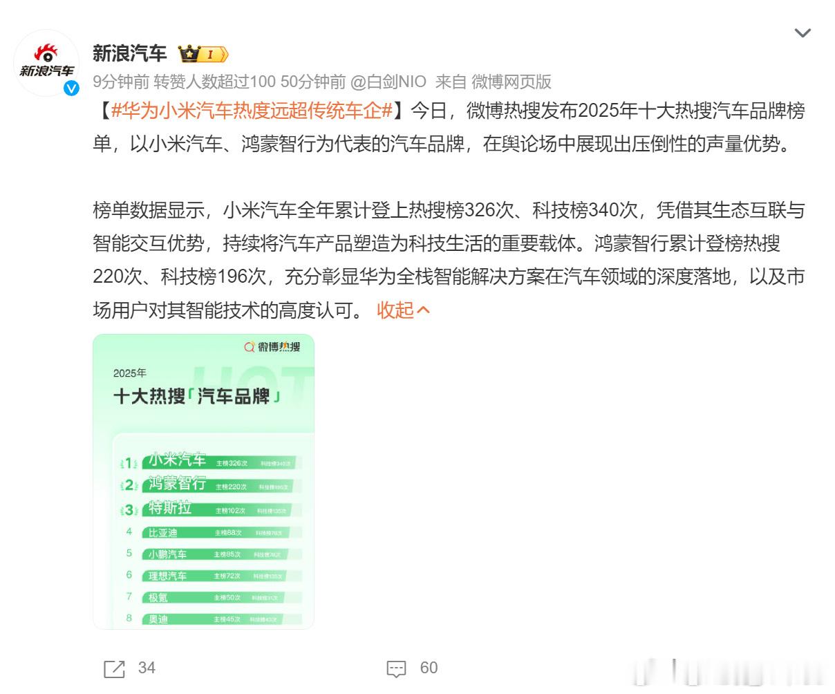 华为小米热度自不必多说,其实我感觉最让人意外的还是奥迪和领克。一个是传统合资,一个是国产燃油车中坚,没想到声量会这么高。虽然不是所有传统车企一发力都能震撼汽车业界,但是这两个品牌证明了只要路子走对了,市场还是会很快向你敞开大门。e5 和领克z 就是最好的证明。
