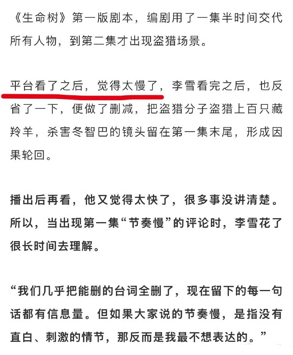 生命树导演李雪对生命树播出效果以及豆瓣一星差评进行了回应: