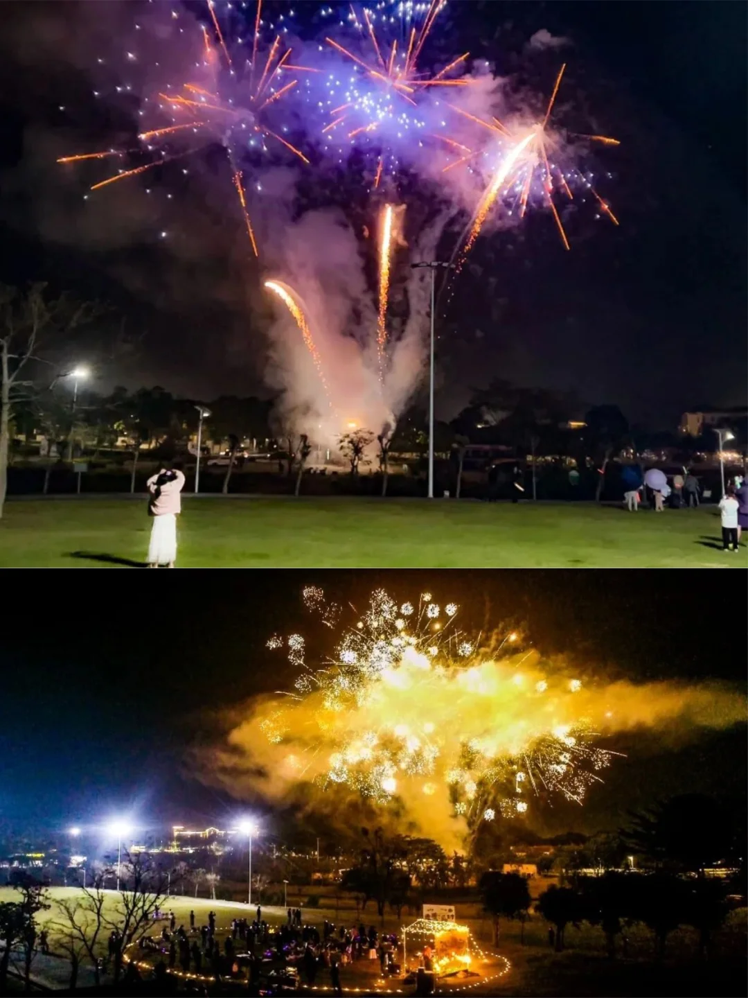 “骏马奔腾”、“一路生花”…在活动大草坪,看烟花照亮夜空,许下新年心愿。