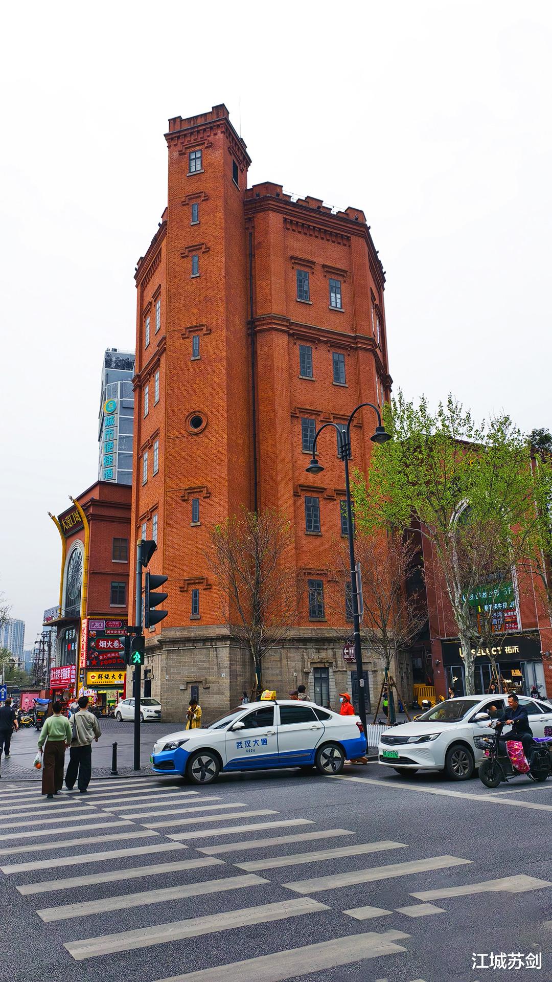 1909年,一座红砖八角形水塔矗立于后城马路(今汉口中山大道),以41.32米的高度俯瞰汉口,成为武汉第一座高层建筑。彼时,水塔周围尽是低矮平房,它以“鹤立鸡群”之姿,见证着这座城市的现代化起步。