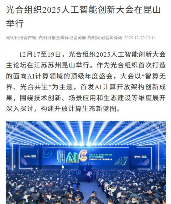 这几天刷新闻,被HAIC大会的官媒报道刷屏了!新华网、人民网、光明日报全在夸,这场行业大会也太有排面了吧!一开始还纳闷,深入了解后才懂其中门道。 官媒说得特别准,现在全球AI竞争进入新阶段,光靠单点技术突破不行,得搞系统化、生态化协同。而HAIC正好踩中了这个关键点!大会上不仅有万卡超集群真机亮相,还启动了联合实验室,30多家企业要联合搞30多项研发,推动标准制定。从芯片、服务器到软件、应用,全产业链都在按开放架构适配,真正做到了“各出长板、抱团发力”。 大会给我的感觉是,国产AI生态已经不是“草台班子”,而是从最底层的芯片、硬件,到中间的系统软件、平台,再到最上层的行业应用,形成了一个系统、完整的闭环。 更关键的是,这个闭环里的玩家,都在按统一的规则(开放架构)分工协作。比如,一个“超节点”服务器,用了生态伙伴的芯片和散热方案;一个科学大模型平台,整合了多家机构的数据集。 2025年是国产AI从单点突破到体系输出的关键年,官媒这波集体站台,就是看好这个开放协同的大趋势,明年绝对是国产AI全面爆发的一年! HAIC2025 AI计算开放架构