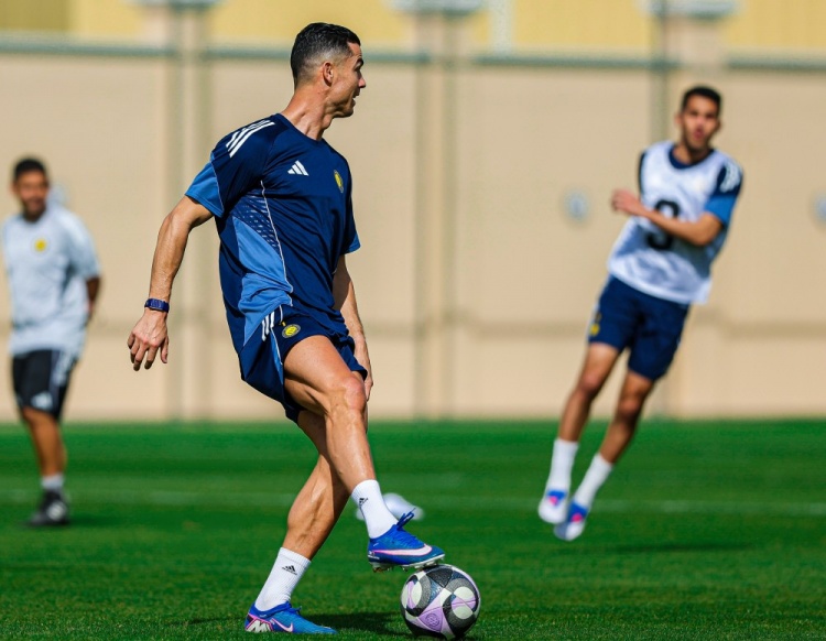 直播吧2月11日讯亚冠二级1/8决赛首回合客战阿卡达,利雅得胜利主帅若热·热苏斯让阵中多名球星轮休,这包括了C罗、马内等人。利雅得胜利在官方社媒上晒出了C罗、马内等人的训练照,葡萄牙球星看起来非常专注。