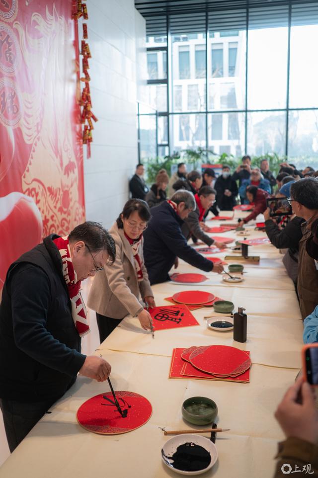 鲍莺、韩硕、丁申阳、杨正新等沪上书画名家现场挥毫泼墨,将满满的新春祝福凝于笔端,为申城市民送上了一份极具艺术温度的新年礼物。