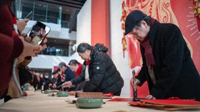 拿到心仪福字的市民,还能与创作名家合影留念,定格这份新春美好。市民王女士带着孩子前来参与,她表示:“能现场拿到名家手写的福字,不仅沾了福气,还能让孩子感受传统文化的魅力,特别有意义。”