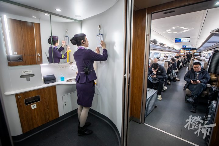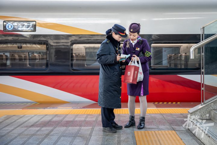 昨天17点58分,G46次“西子号”列车途经杭州东站,旅客们纷纷下车,而钱佳和列车员们还将随车前往北京南站,继续完成本次出乘任务。