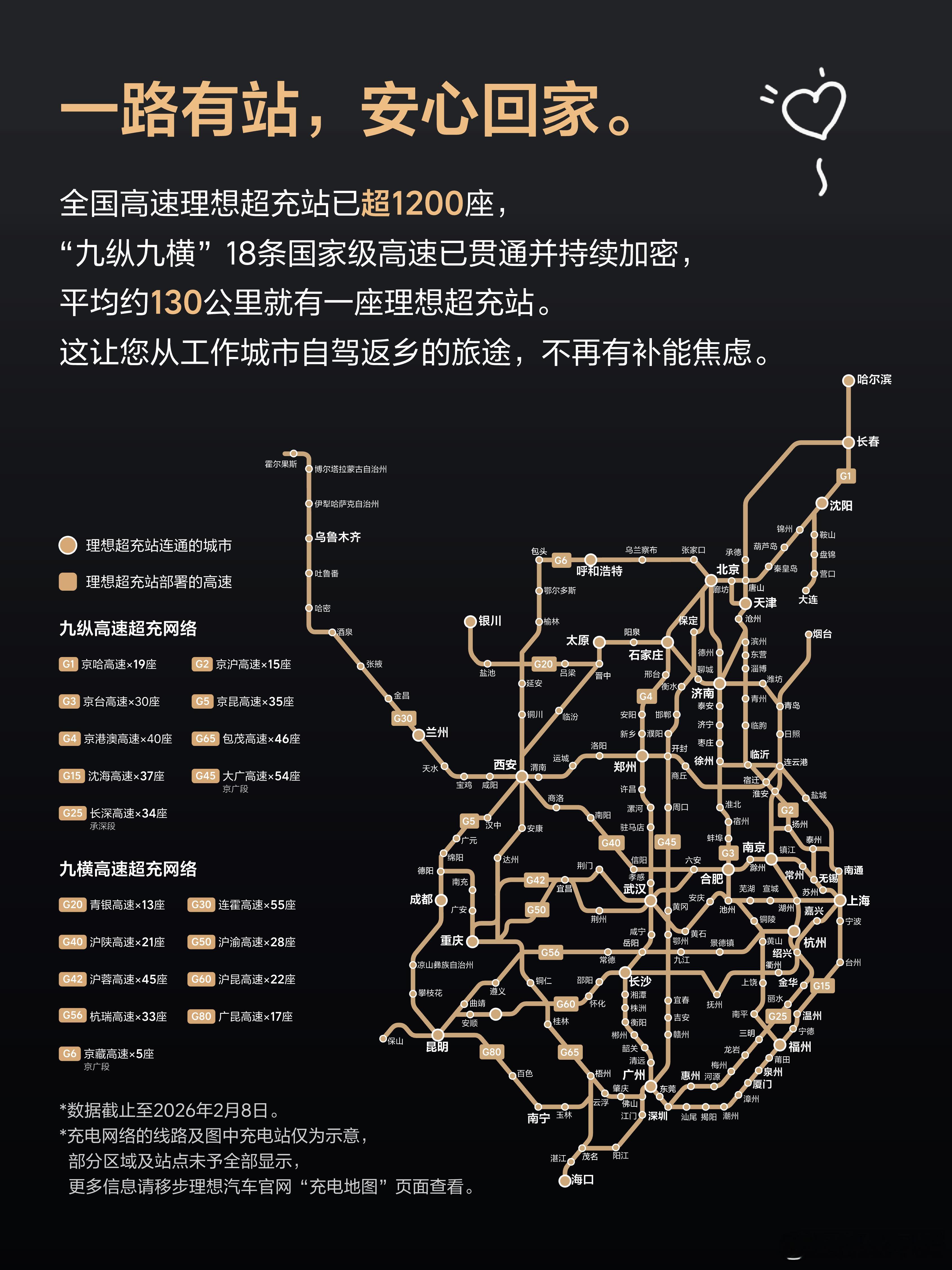 从去年国庆就有用户反馈,高速服务区理想超充有专人管理。而且理想超充站功率都在250kW以上,自建超充站和超充桩的数量也都是各车企里最多的。马上到春节出行高峰期了,理想超充站布局已经覆盖31个省份,车主自驾返乡的补能体验也有保障。