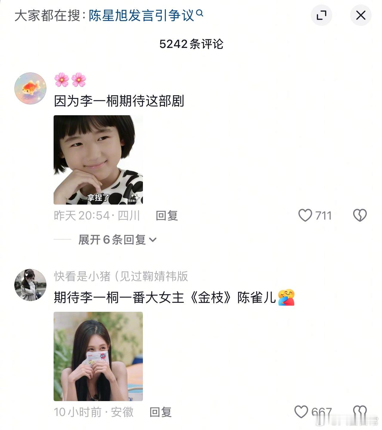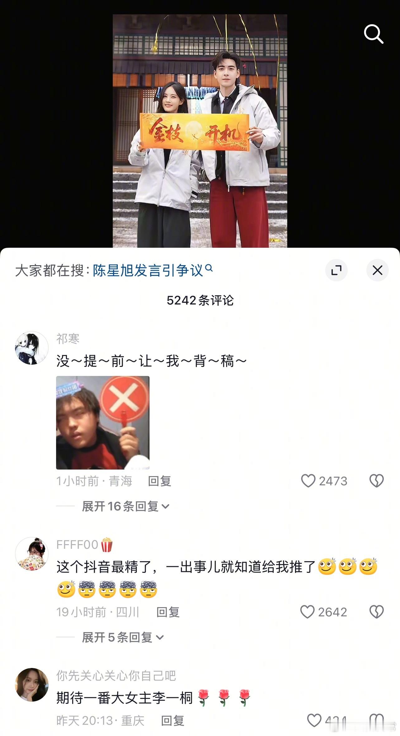 李一桐、陈星旭《金枝》官抖评论区