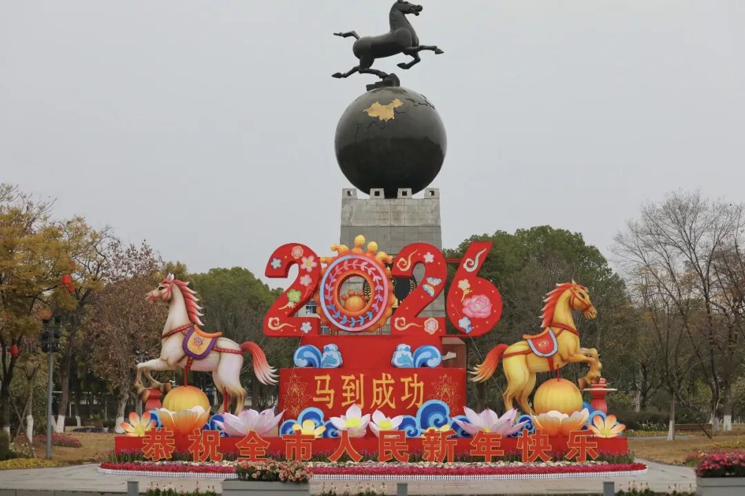市区各主干道上,数万盏灯笼整齐悬挂,马年元素印花点缀其间,喜庆气息扑面而来。