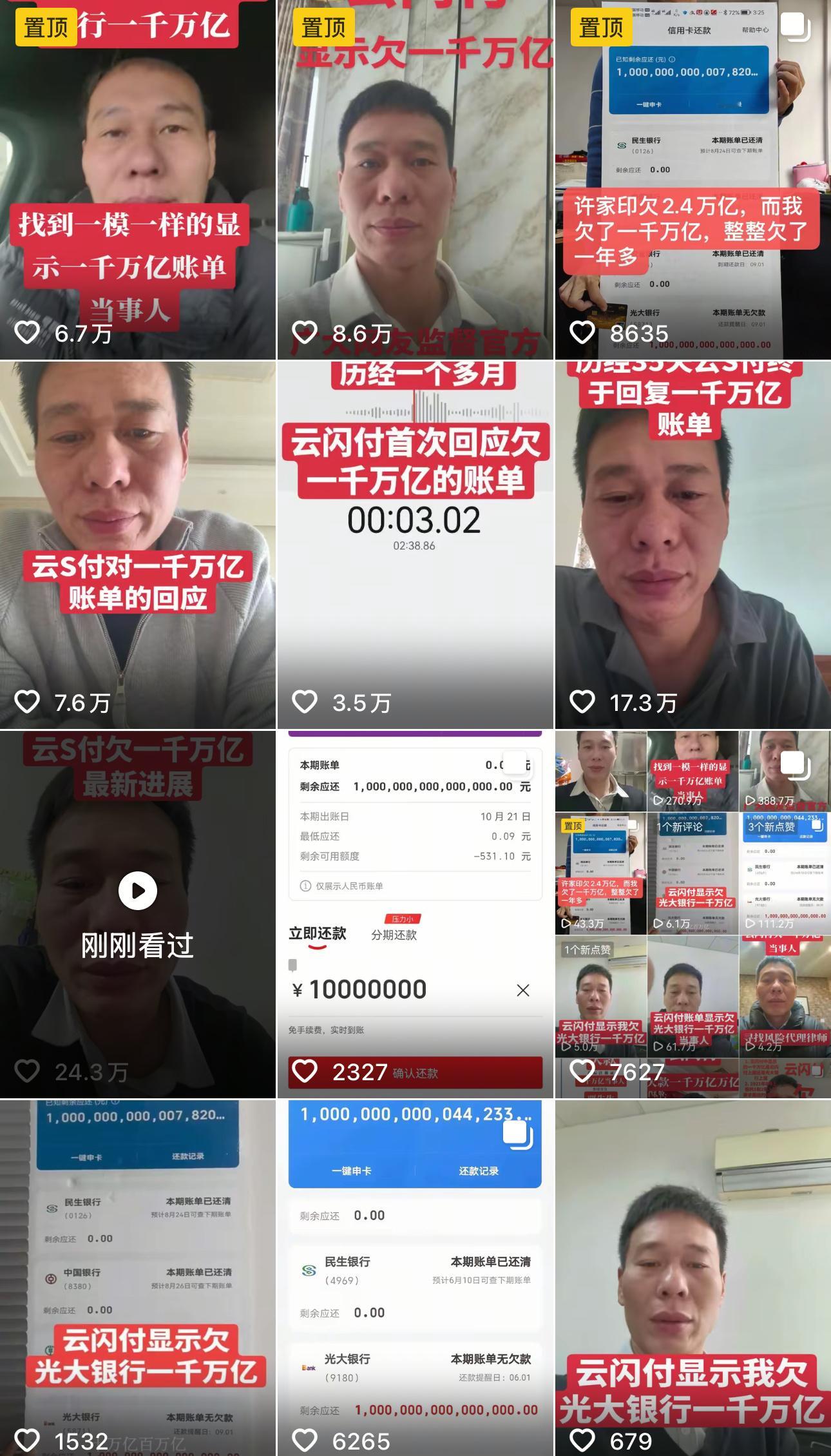 云闪付显示,他欠了光大银行一千万亿