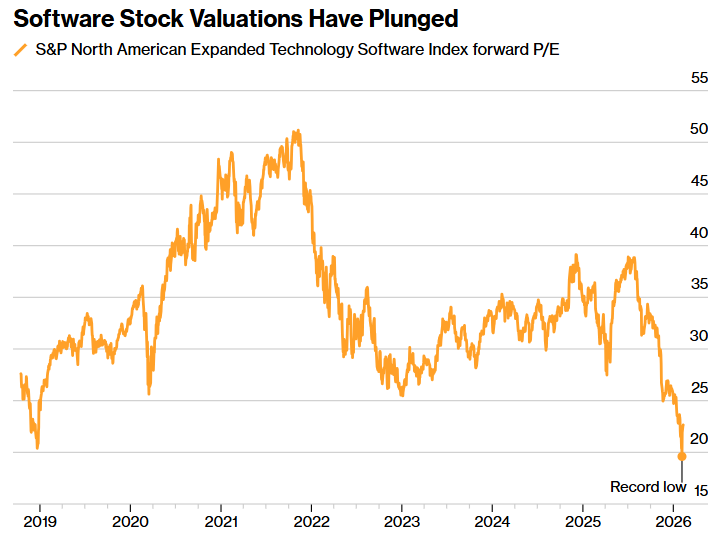 市场专业人士越来越认为,过去几周软件股遭受的打击过大,在过度的抛售潮中股价暴跌的股票出现了新的低价买入机会。摩根大通的策略师们在周二发给客户的一份报告中写道,基于“对人工智能颠覆性变革的过度悲观预期以及稳健的基本面”,软件市场存在反弹的潜力。与此同时,高盛首席执行官大卫·所罗门周二表示,他认为此次抛售“范围过广”。