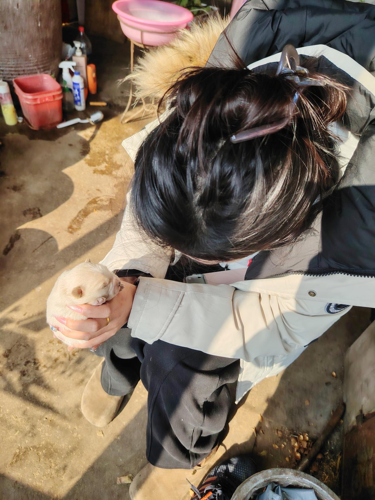 冬日生活打卡季家里的大狗下了两个小奶狗,你看闺女喜欢的不行不行的,真可爱,你看那