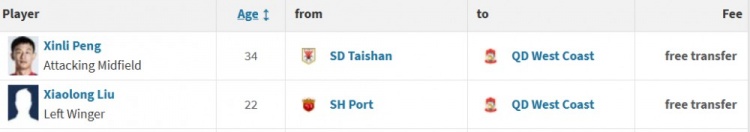 直播吧2月11日讯根据德国转会市场网站信息显示,彭欣力和刘小龙已经加盟青岛西海岸。